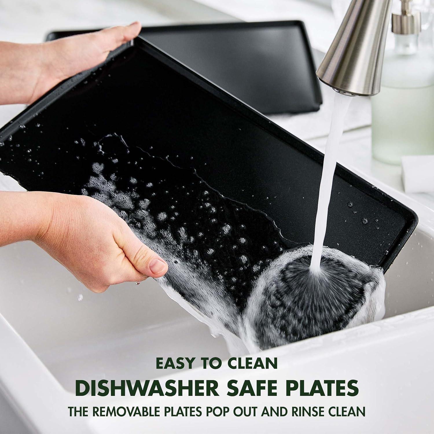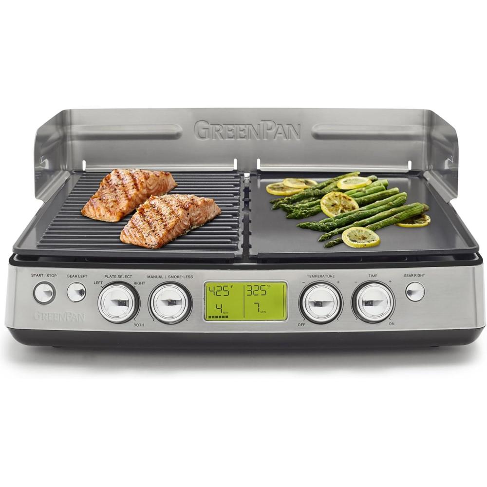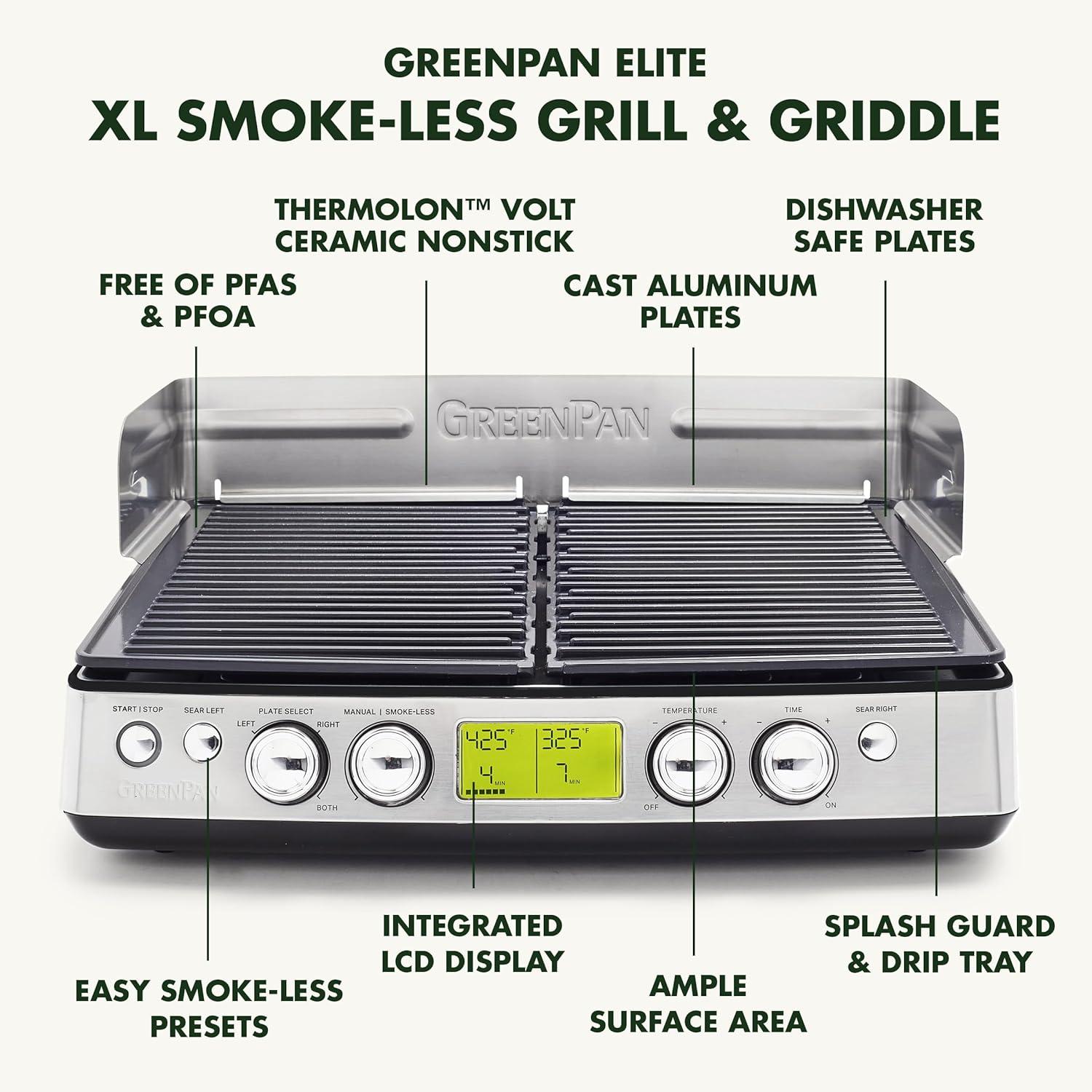 GreenPan Elite XL Smoke-less Grill and Griddle, Healthy Ceramic Nonstick Interchangeable/Removeable Cast Aluminum Plates, Indoor BBQ Sear Sizzle, LCD Display, Splash Guard, Drip Tray, PFAS-Free, Black(Black)