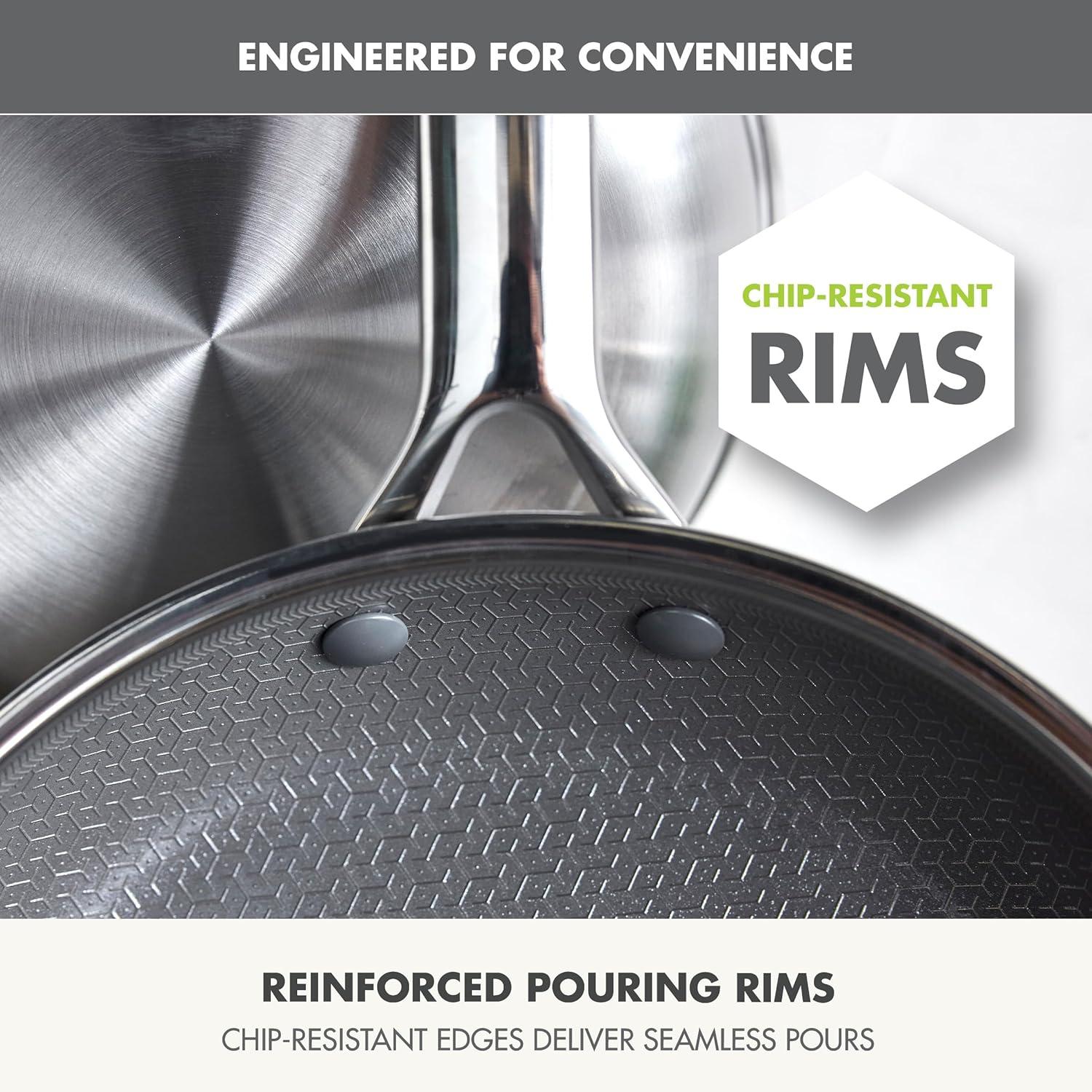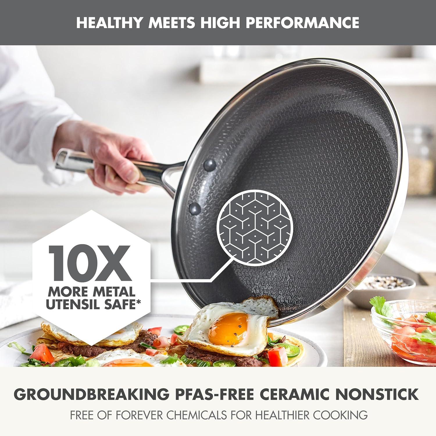 HYBRID THERMOBOND TECHNOLOGY: The next level of PFAS-free performance, combining cutting-edge diamond-infused ceramic nonstick, stainless steel etched pattern, and a nonstick boost layer for a seamless cooking experience