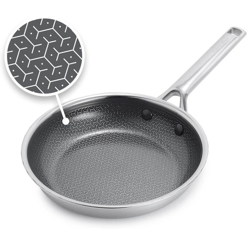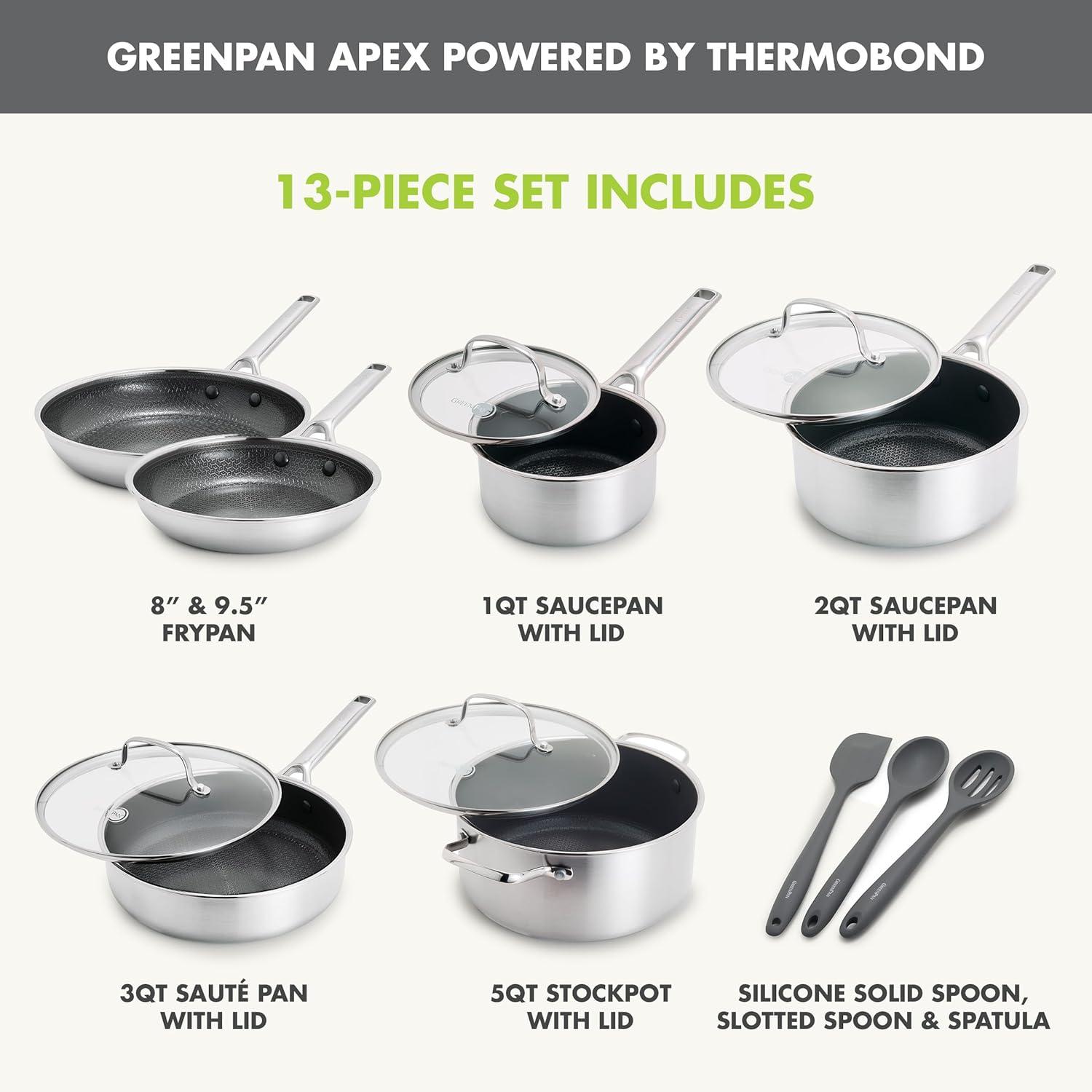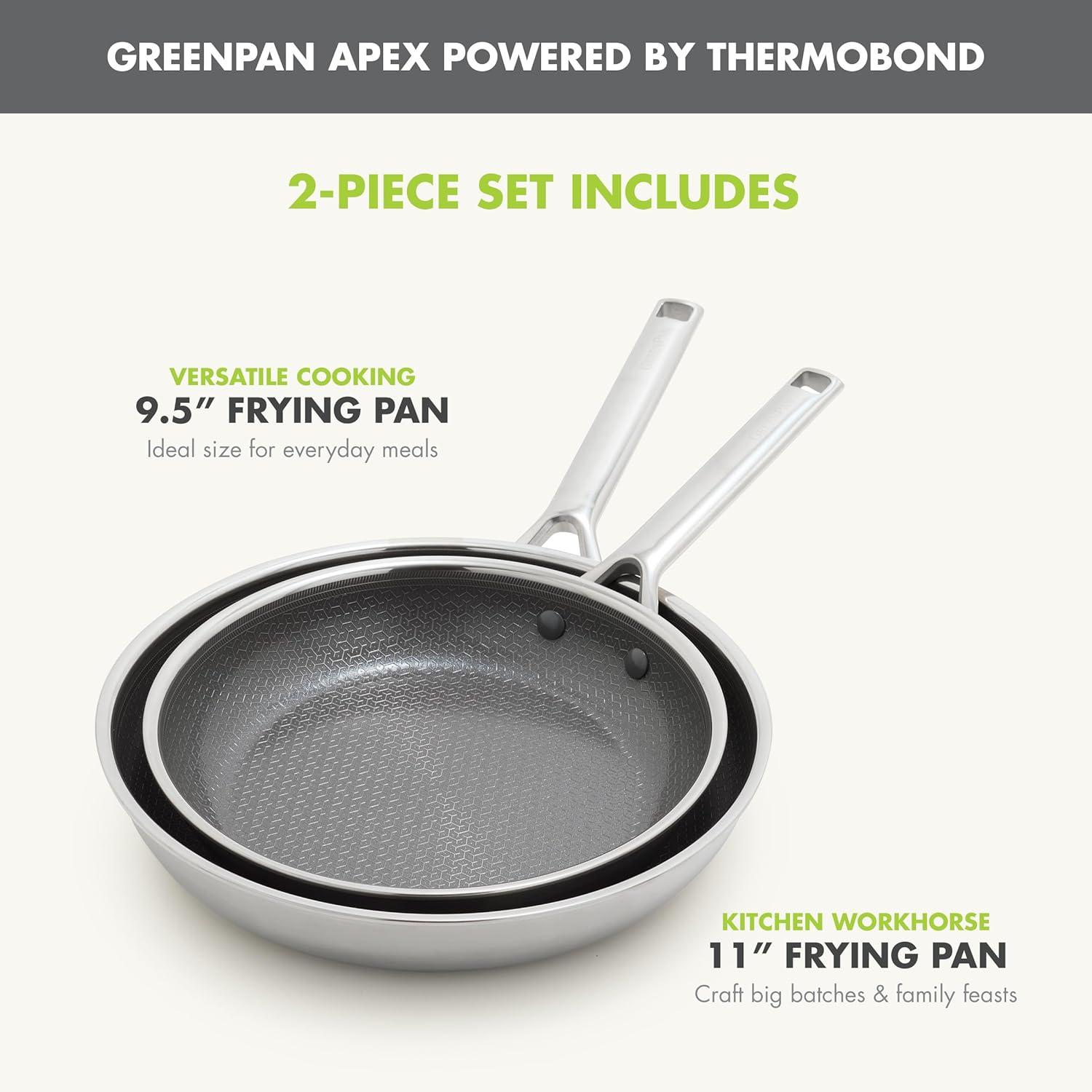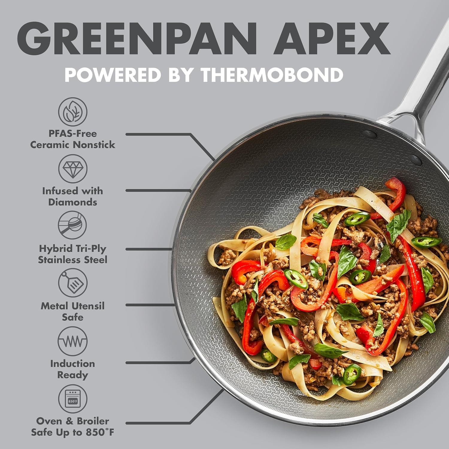 GREENPAN APEX: Hybrid Thermobond Technology fuses diamond-infused, PFAS-free ceramic nonstick with an etched stainless steel pattern for unmatched searing, effortless release, and pro-grade durability that’s 10x more metal-utensil safe.