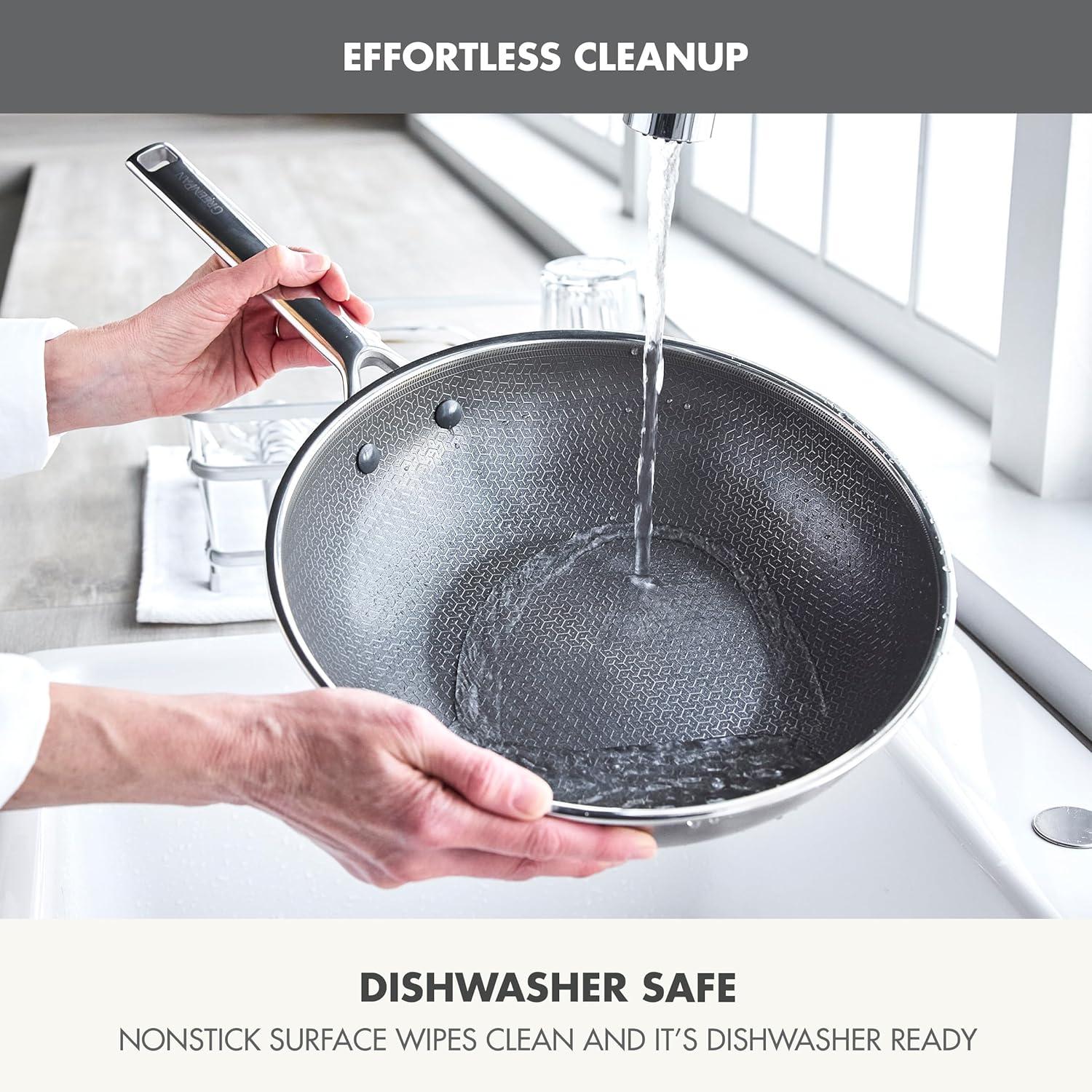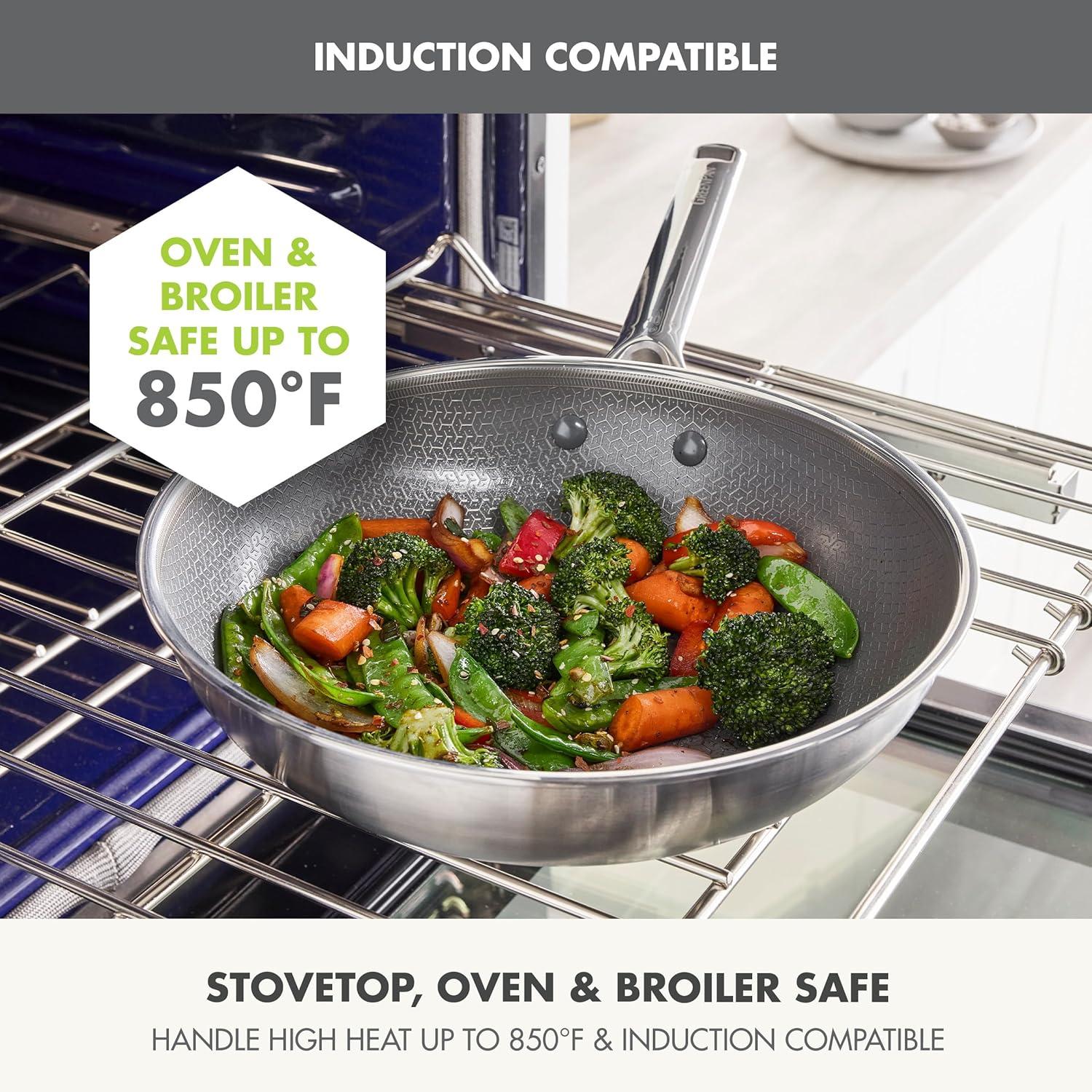 GreenPan Hybrid 11” Nonstick Stainless Steel Wok Pan, APEX Tri-Ply Thermobond PFAS-Free Ceramic Skillet, Induction & All Cooktop Compatible, Oven Temp to 850°F, Dishwasher Safe, Silver(Silver)
