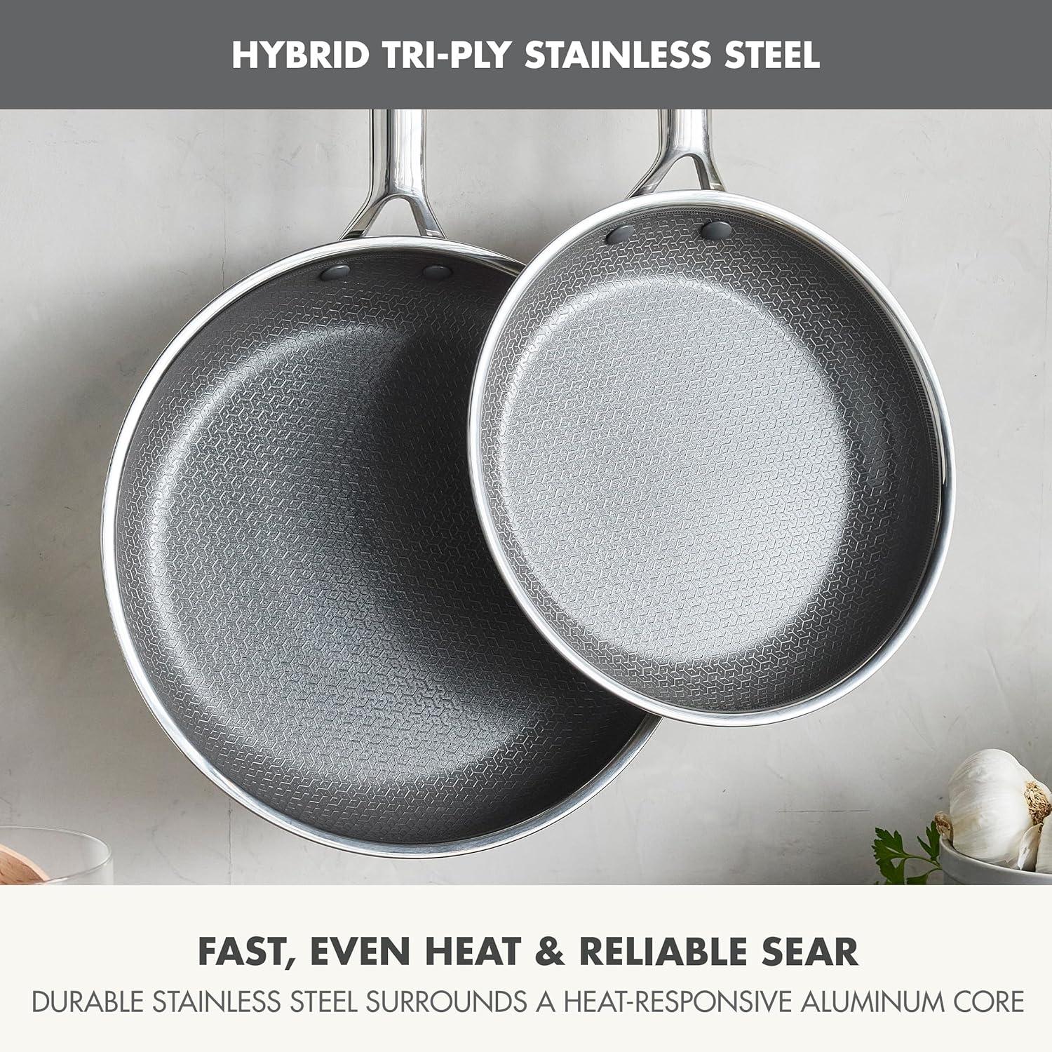TRI-PLY STAINLESS STEEL CONSTRUCTION: Two stainless steel layers surround a powerful aluminum core for excellent heat transfer, easy searing, and perfect browning.