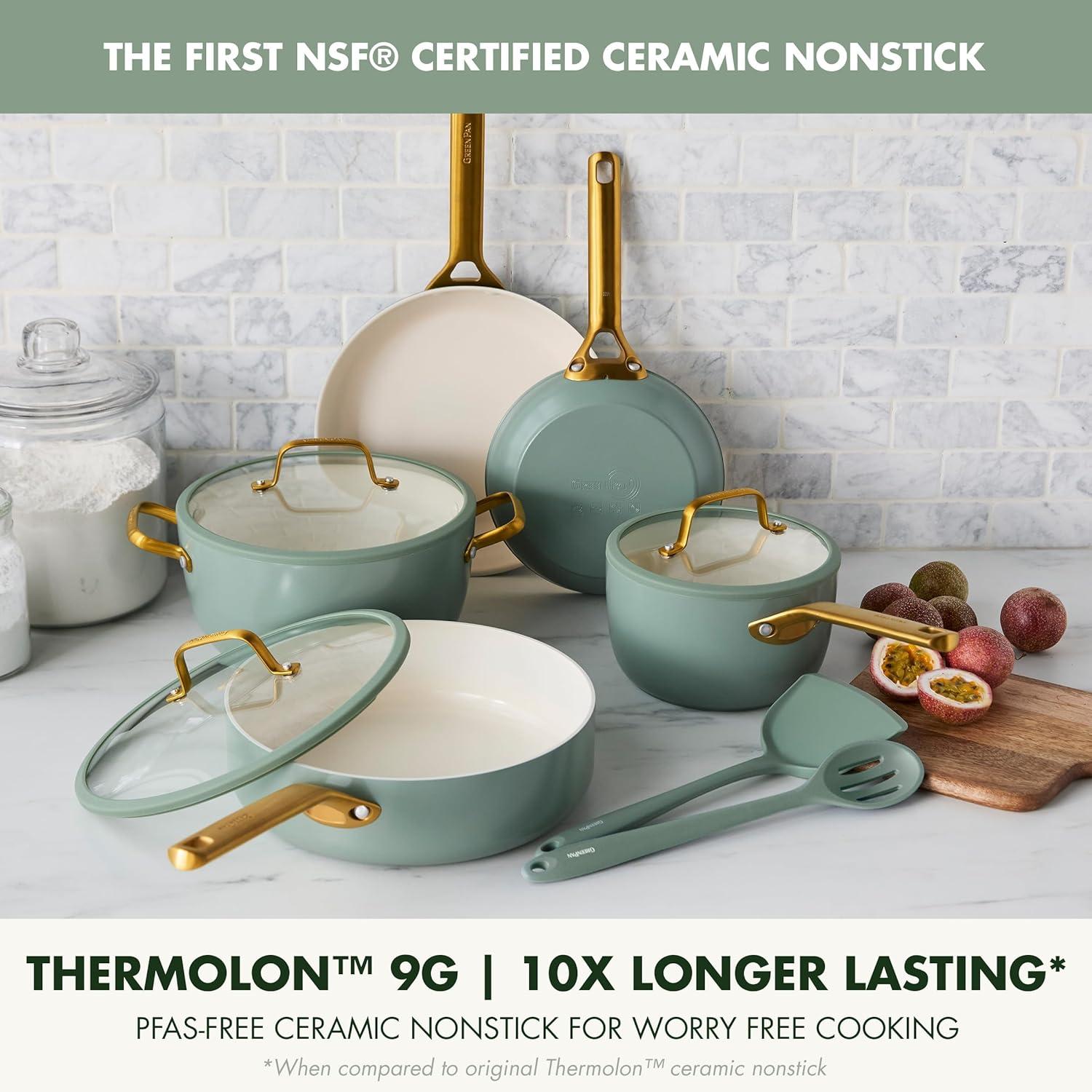 10X LONGER LASTING*: Thermolon 9G is the latest evolution in toxin-free cooking. It delivers supercharged performance, remarkable nonstick release, and next-level scratch resistance. The first NSF Certified ceramic nonstick, it's free of PFAS for worry-free cooking.