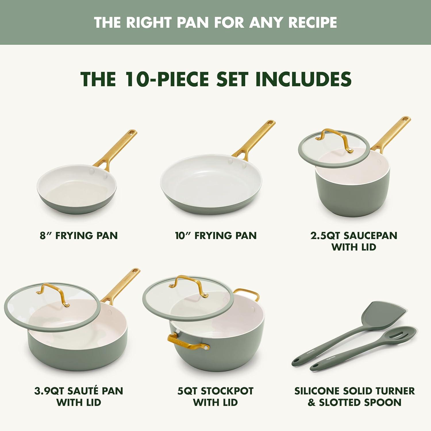 GreenPan Nonstick Reserve Pro 10 Piece Cookware Set, NSF Certified Ceramic, Hard Anodized PFAS-Free Pots & Pans Set with Lids, Stainless Steel Handles, Oven & Dishwasher Safe, Oyster Gray(Moss Green)