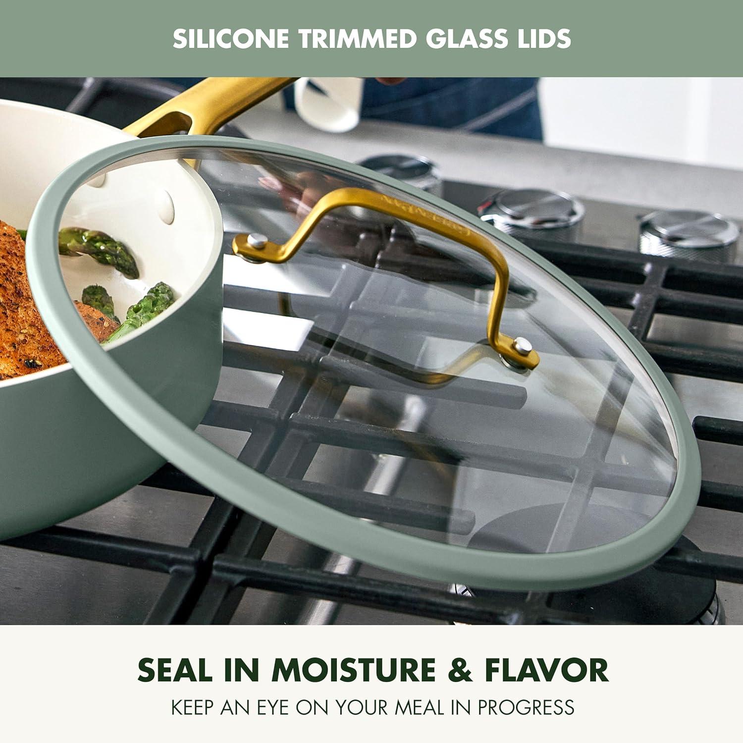 DURABLE DOMED GLASS LIDS: The tempered glass lids feature a silicone rim to lock in heat and moisture so you can watch all the action on the outside.
