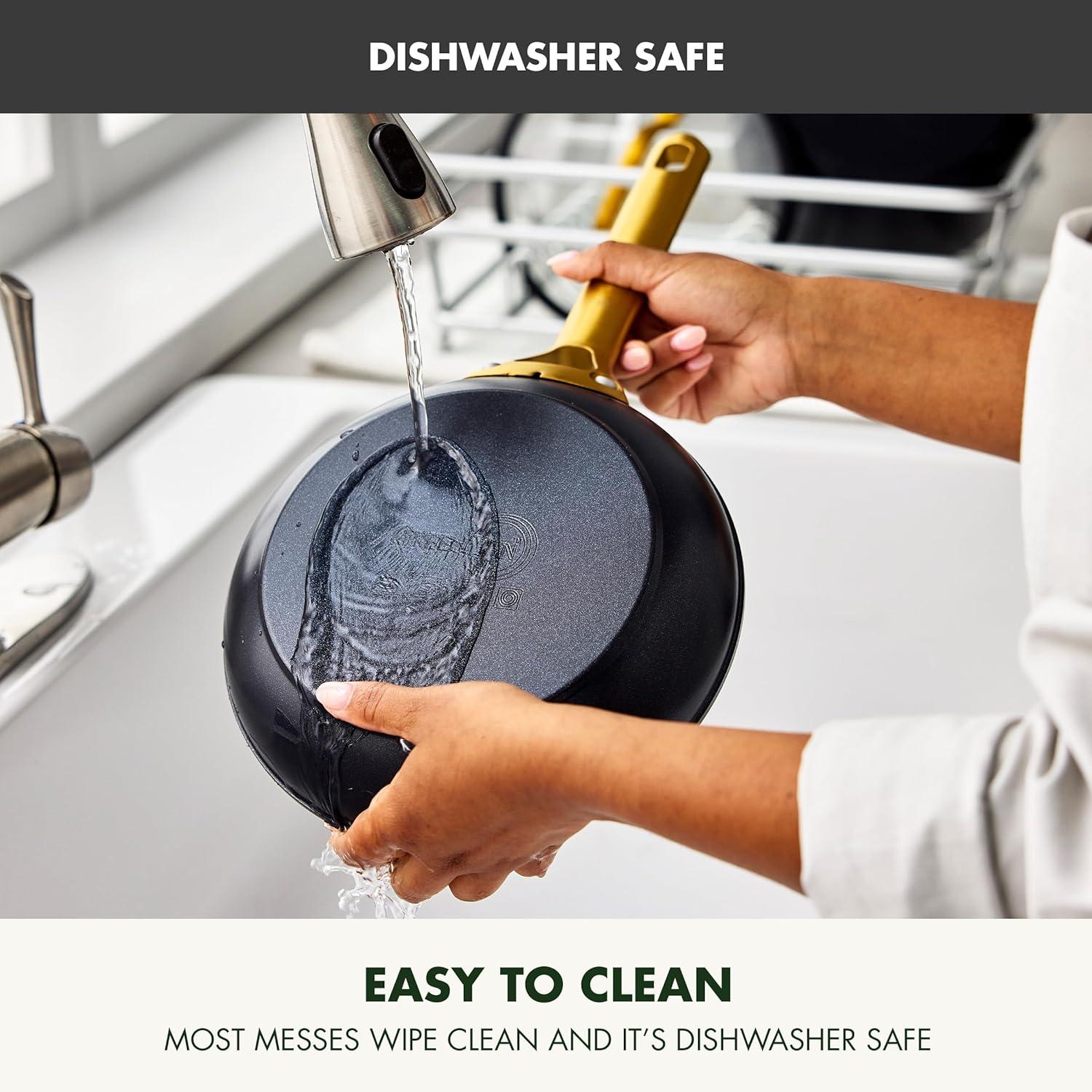 GreenPan Swift 10″ Ceramic Nonstick Frying Pan Skillet, PFAS & PFOA-Free Healthy Cooking, Gold Stainless Steel Handle, Versatile Cooking Essentials, Dishwasher & Oven Safe, Cream(Black)