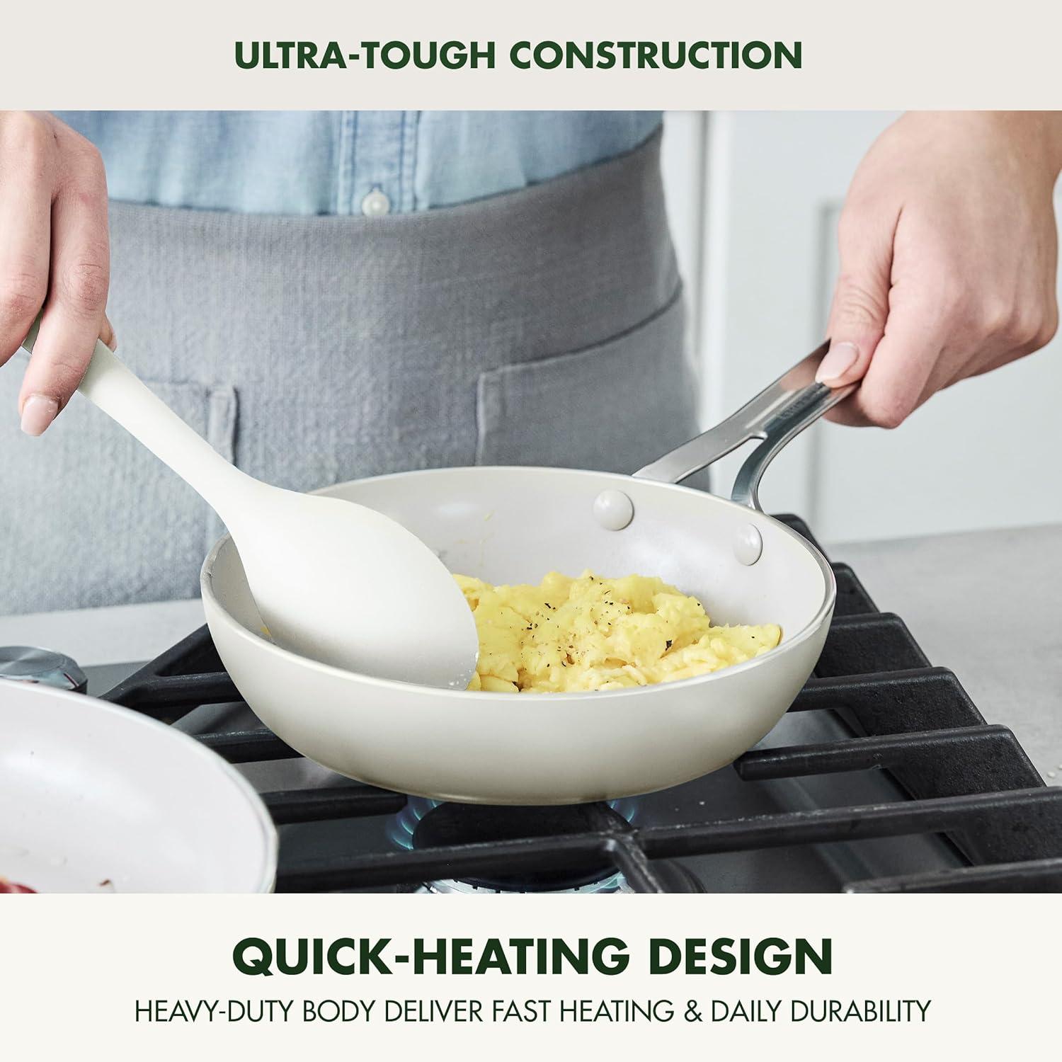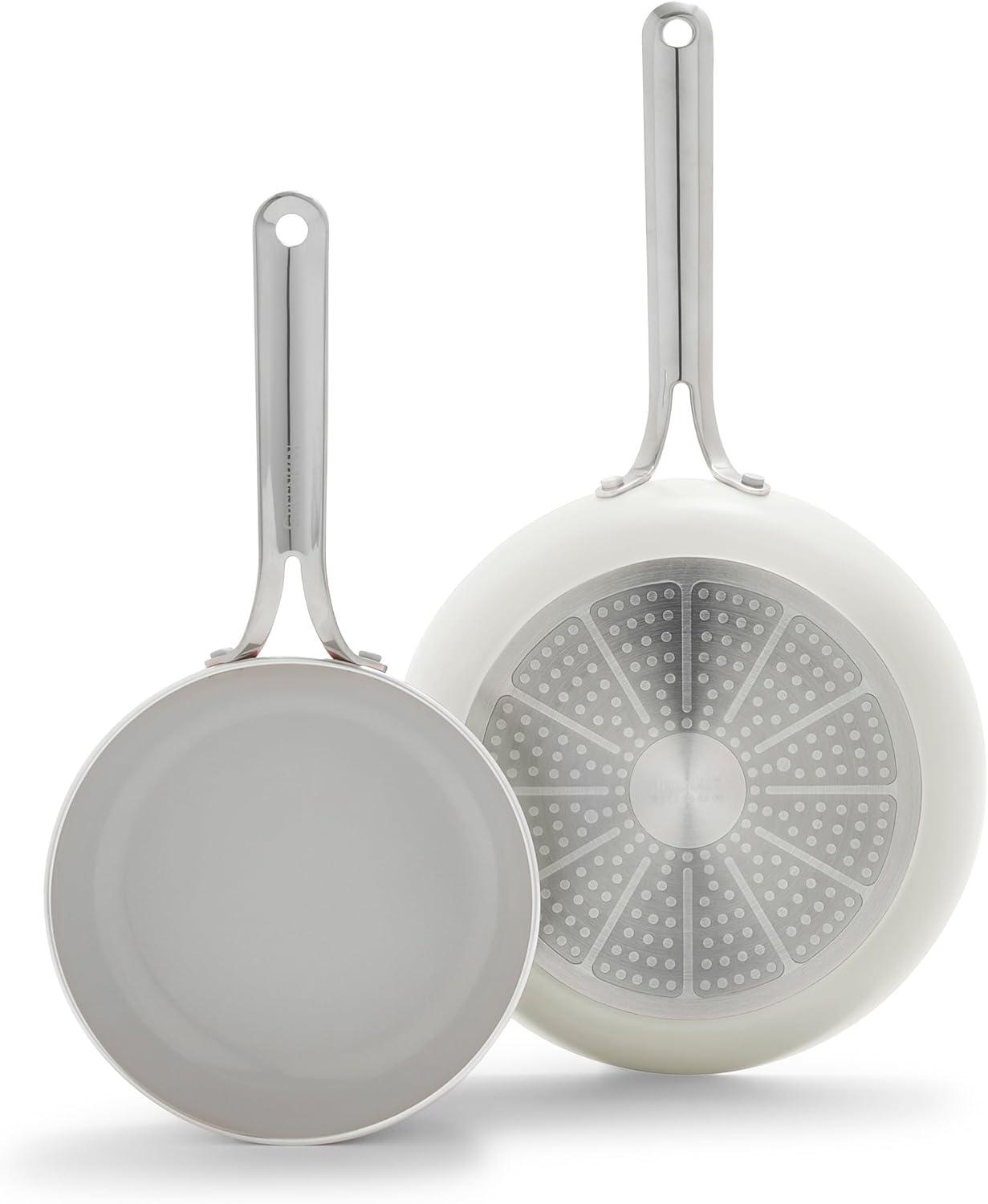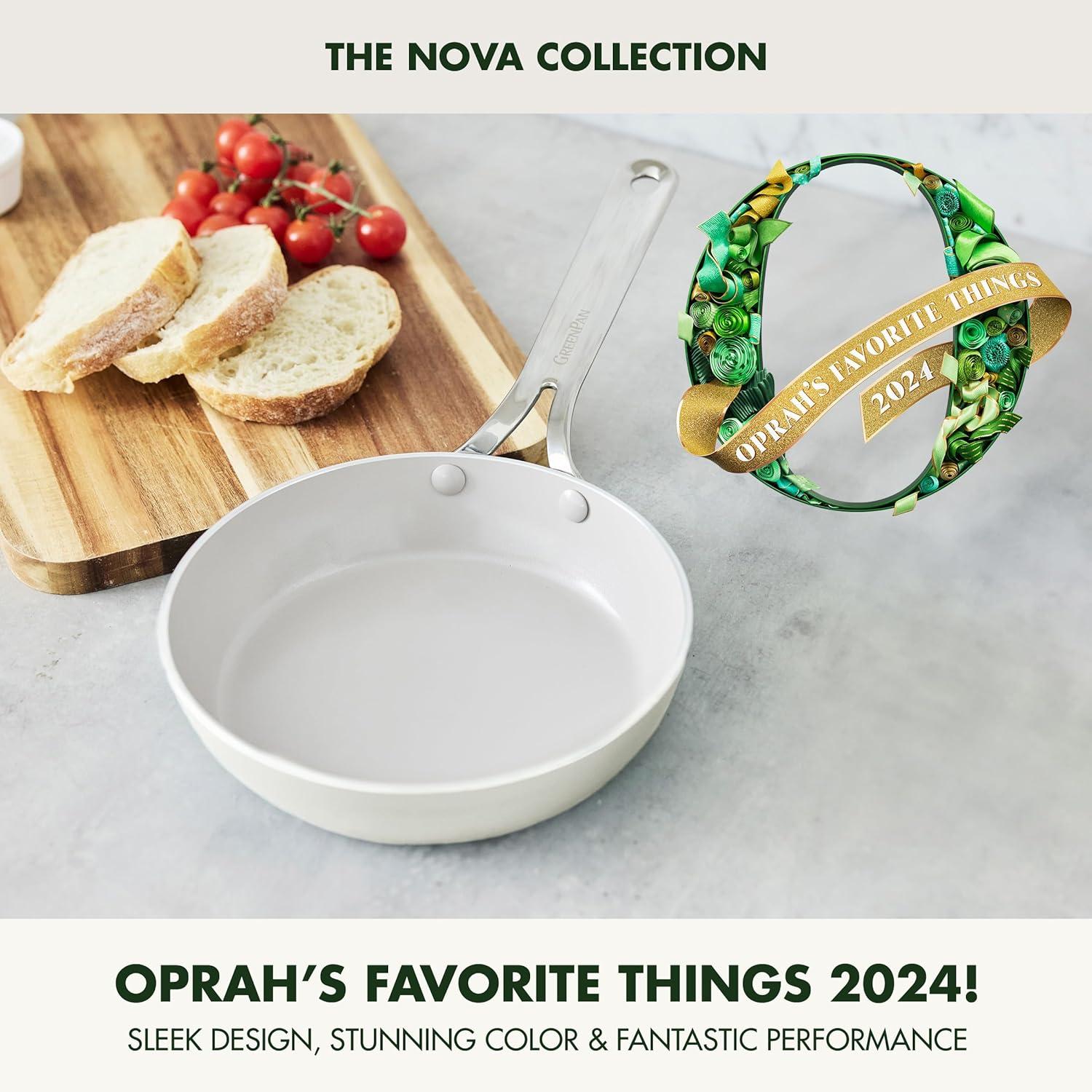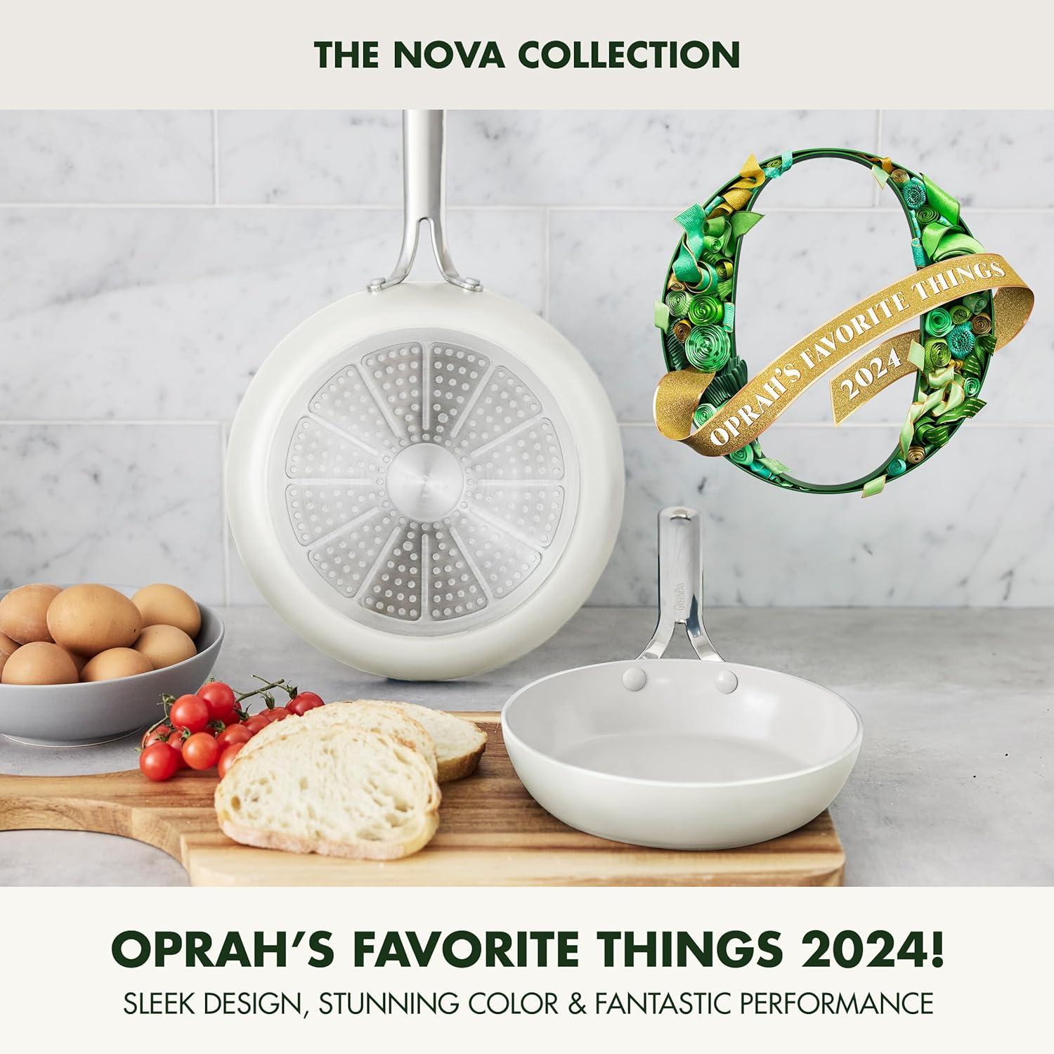 GreenPan Nova 8” & 10” 2 Piece Frying Pan Skillet Set, Oprah’s Favorite Things 2024, Induction Suitable PFAS-Free Nontoxic Ceramic Nonstick, Dishwasher & Oven Safe, Quick Even Heating, Cream(Cream)