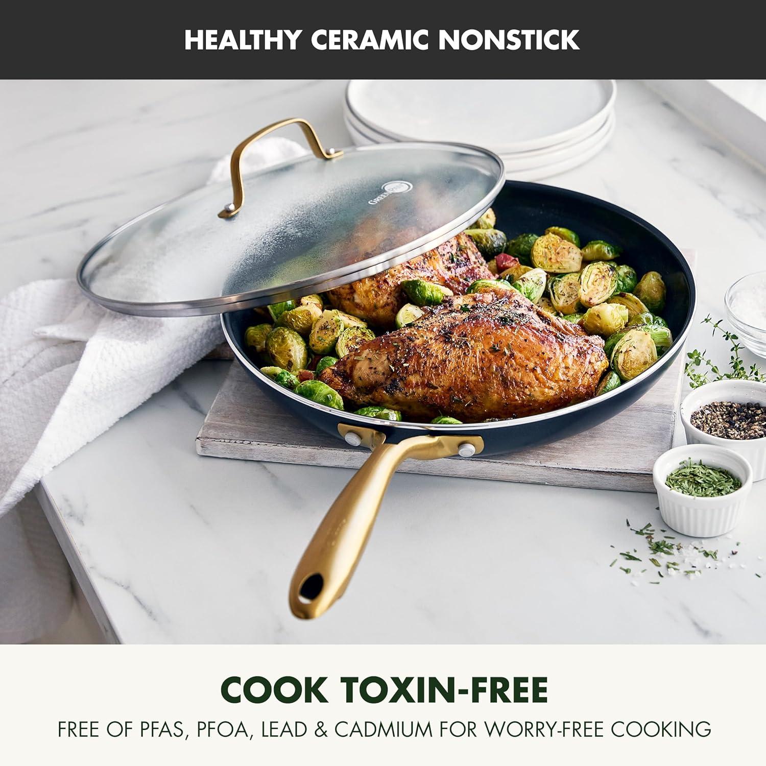 GreenPan Swift 10″ Ceramic Nonstick Frying Pan Skillet, PFAS & PFOA-Free Healthy Cooking, Gold Stainless Steel Handle, Versatile Cooking Essentials, Dishwasher & Oven Safe, Cream(Black)