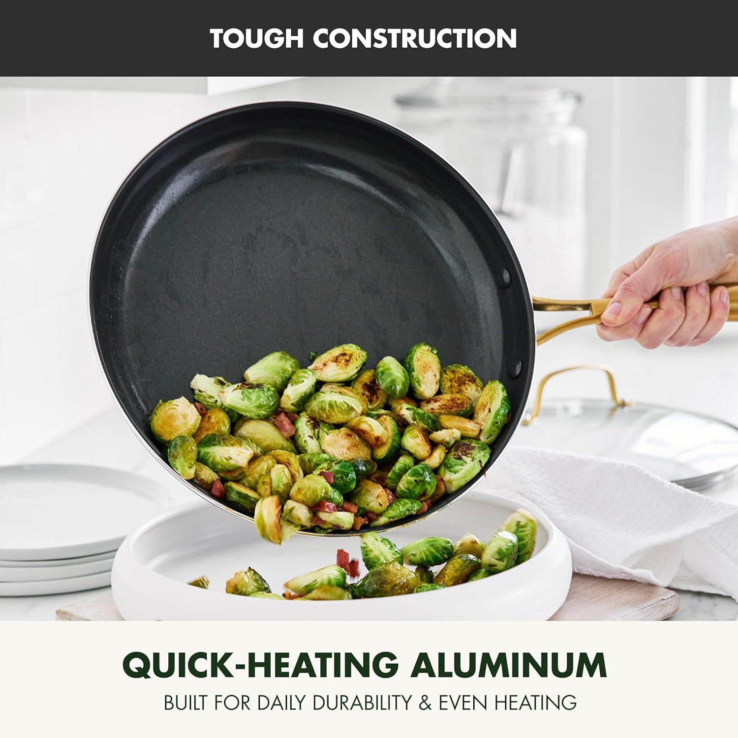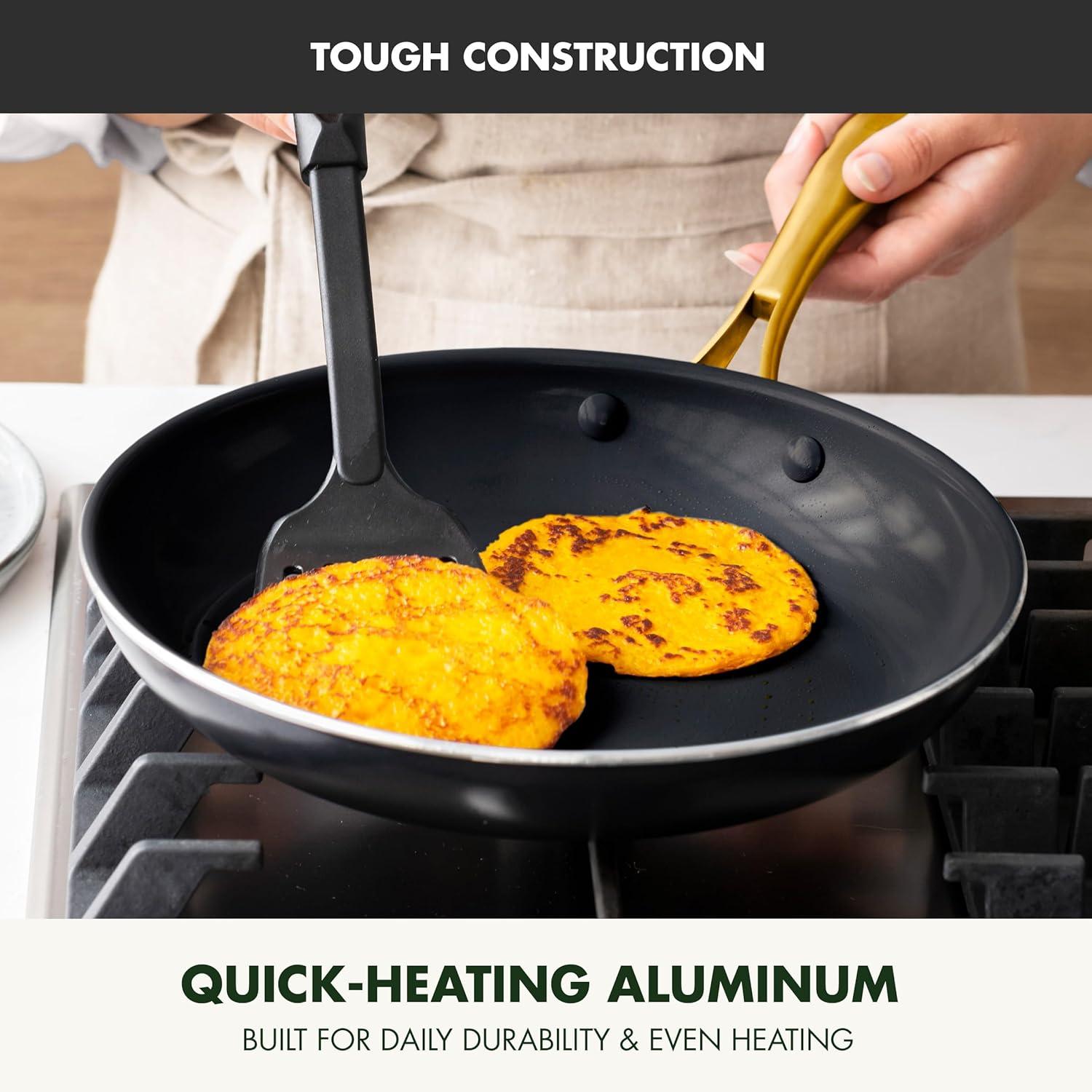 GreenPan Swift 10" Ceramic Nonstick Frying Pan Skillet, PFAS & PFOA-Free Healthy Cooking, Gold Stainless Steel Handle, Versatile Cooking Essentials, Dishwasher & Oven Safe, Cream(Black)