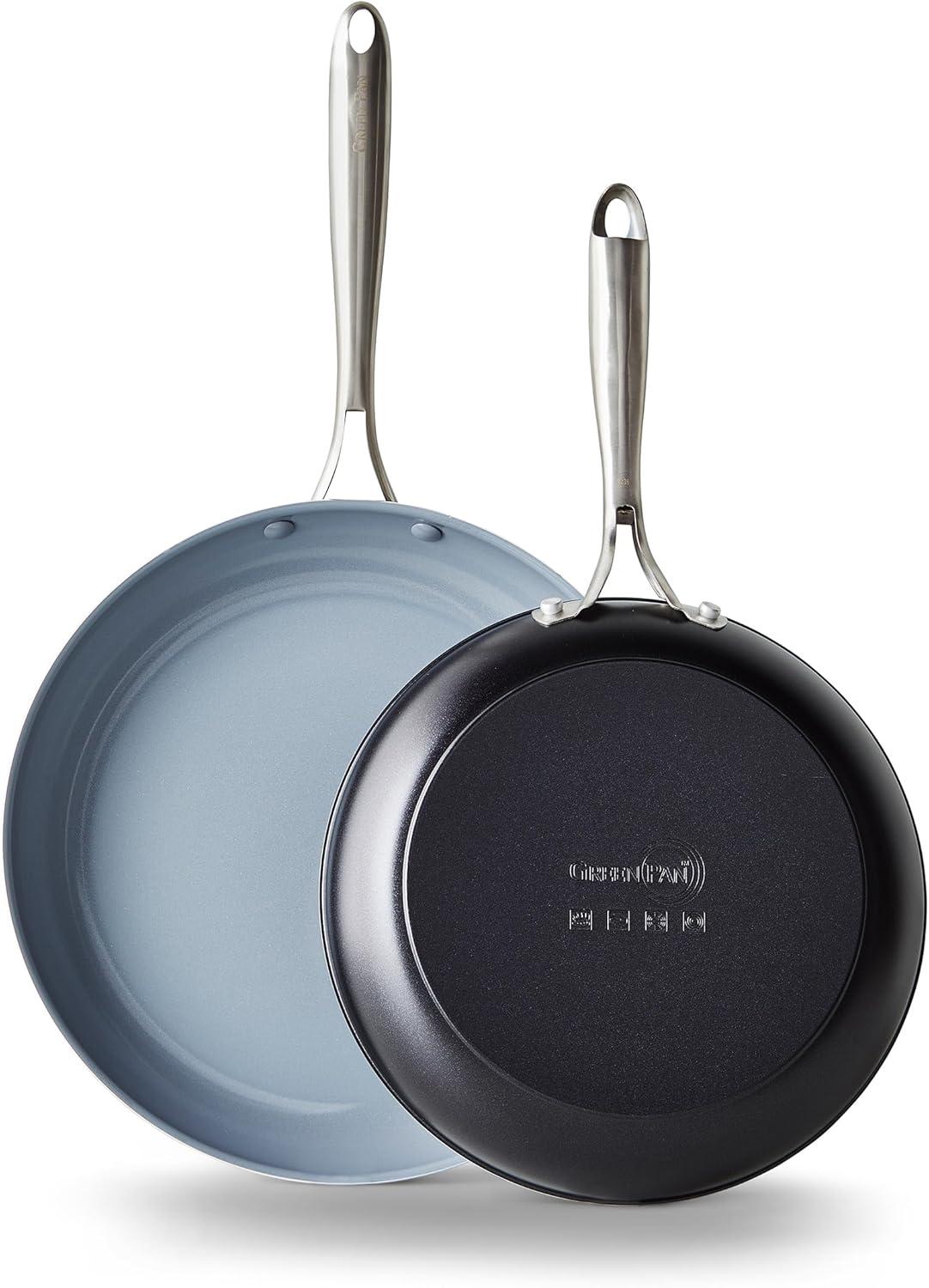GreenPan Chatham Hard Anodized Healthy Ceramic Nonstick, 10″ Frying Pan Skillet, PFAS-Free, Dishwasher Safe, Oven Safe, Gray(8″ Frying Pan Skillet)