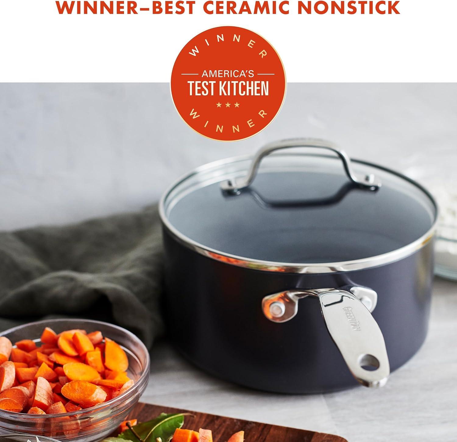 CUTTING-EDGE CERAMIC NONSTICK: Infused with diamonds, GreenPan's metal utensil safe ceramic nonstick offers remarkable durability, balanced heating, and effortless cleanup.
