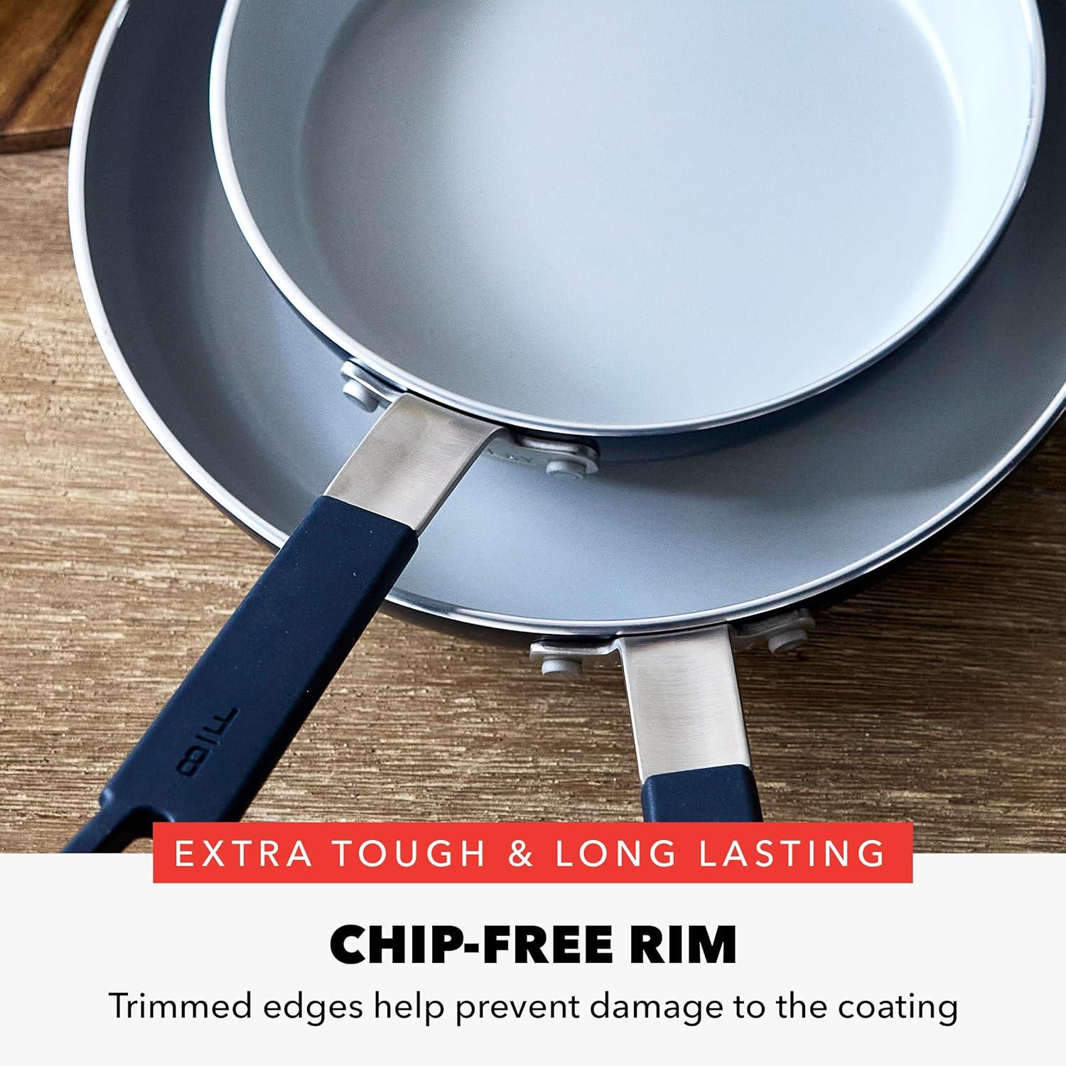imageGreenPan x Bobby Flay 2 Piece 8 and 10 Nonstick Frying Pan Skillet Set PFASFree Diamond Ceramic Induction Suitable StayCool Silicone Handle Easy Clean Dishwasher ampamp Oven Safe CreamBlack