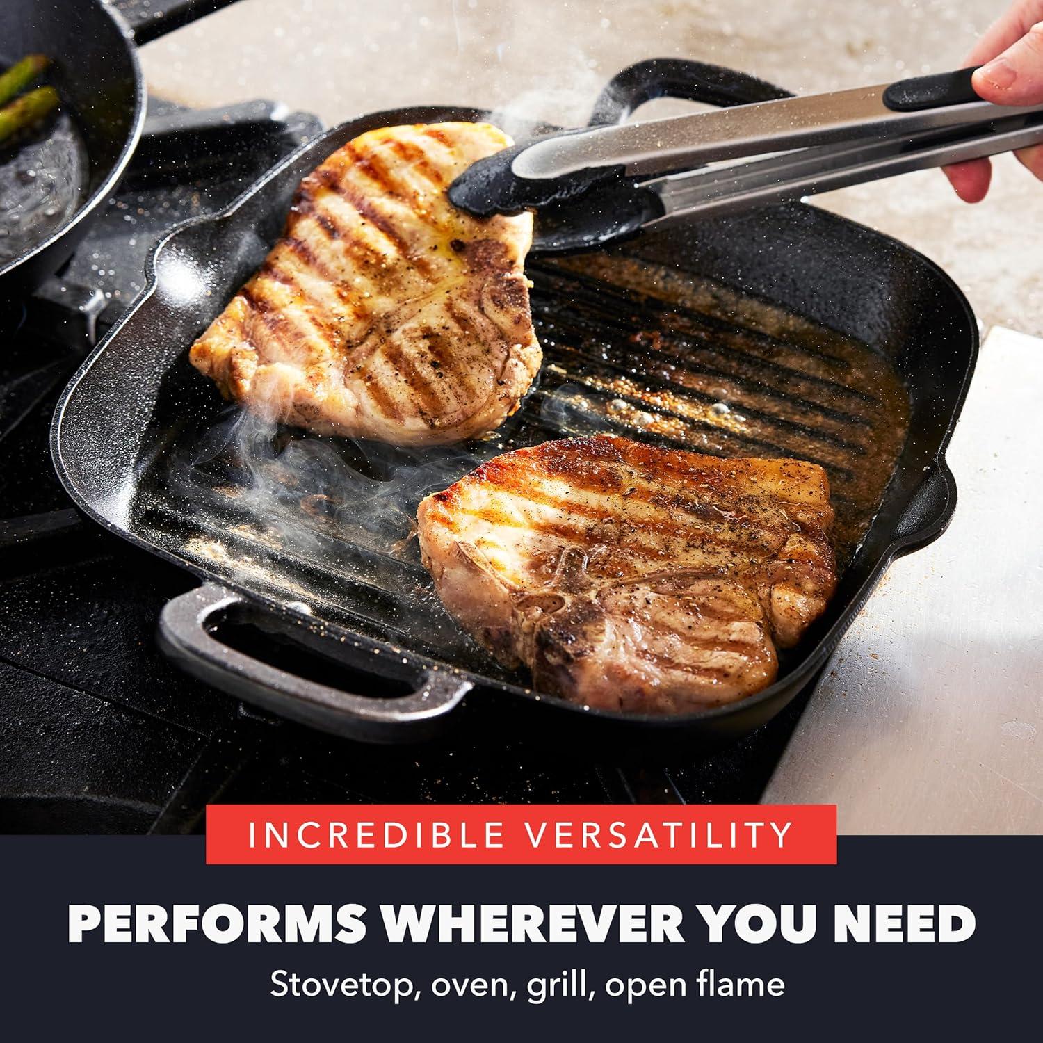 imageGreenPan x Bobby Flay Cast Iron 11 Square Grill Pan PreSeasoned Professional Grade Heavy Duty Skillet Helper Handles Induction Suitable Stovetop Oven BBQ ampamp Fire Indoor ampamp Outdoor Use BlackBlack