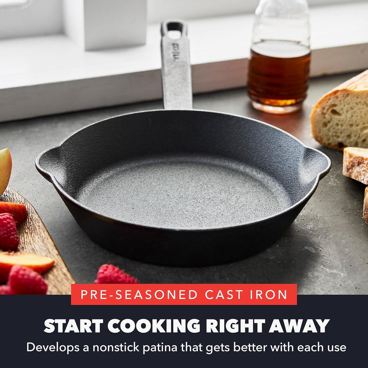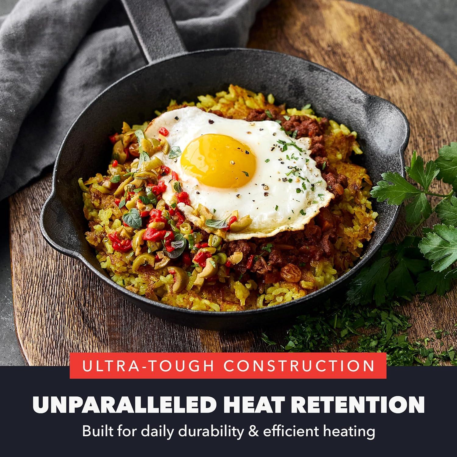 NATURALLY NONSTICK PERFORMANCE: This cast iron pan builds a nonstick patina over time, ensuring effortless food release and rich, flavorful cooking.