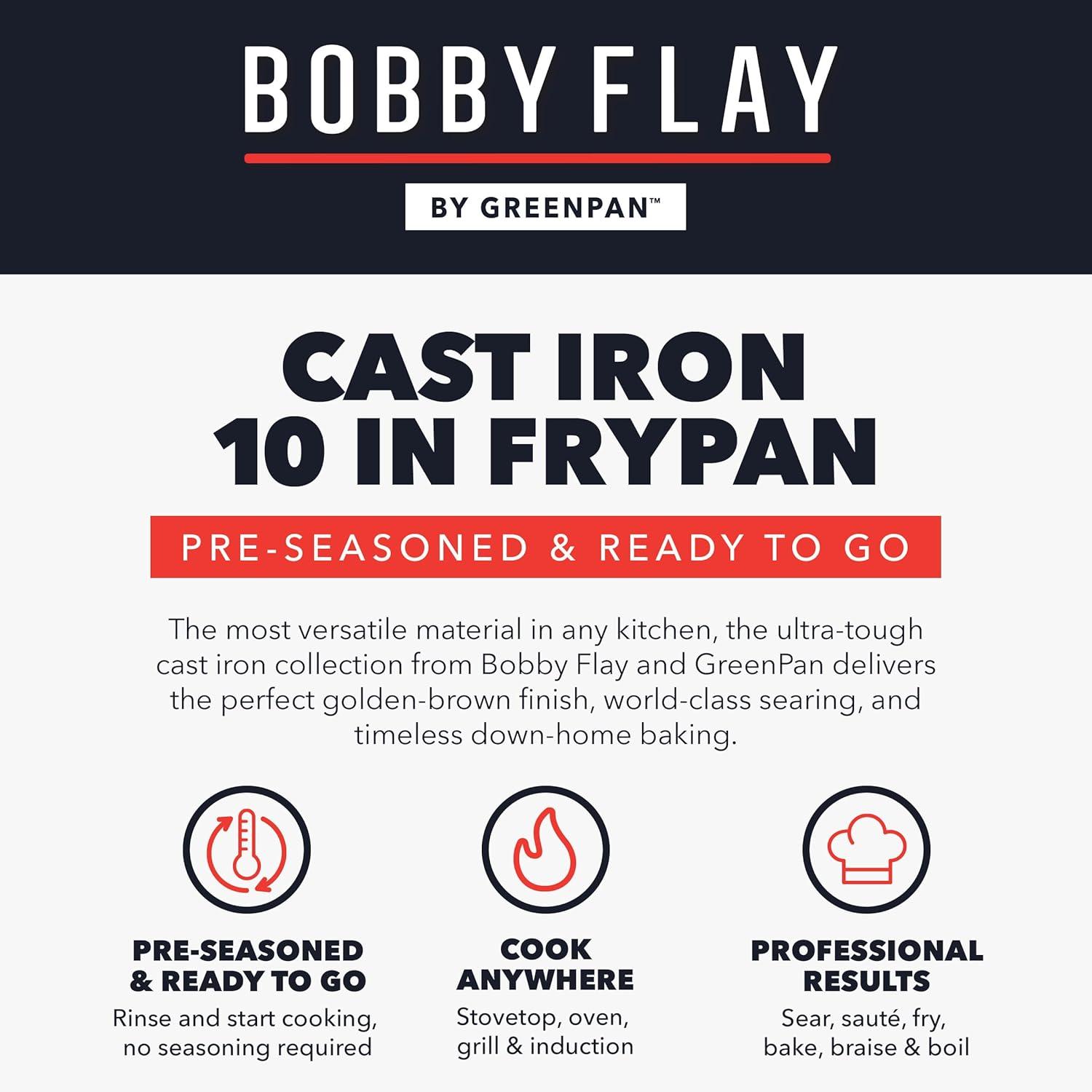 BOBBY FLAY x GREENPAN CAST IRON GRILL PAN: Legendary chef Bobby Flay brings his grilling expertise to your kitchen with this premium cast iron grill pan, crafted in partnership with GreenPan for professional results at home.
