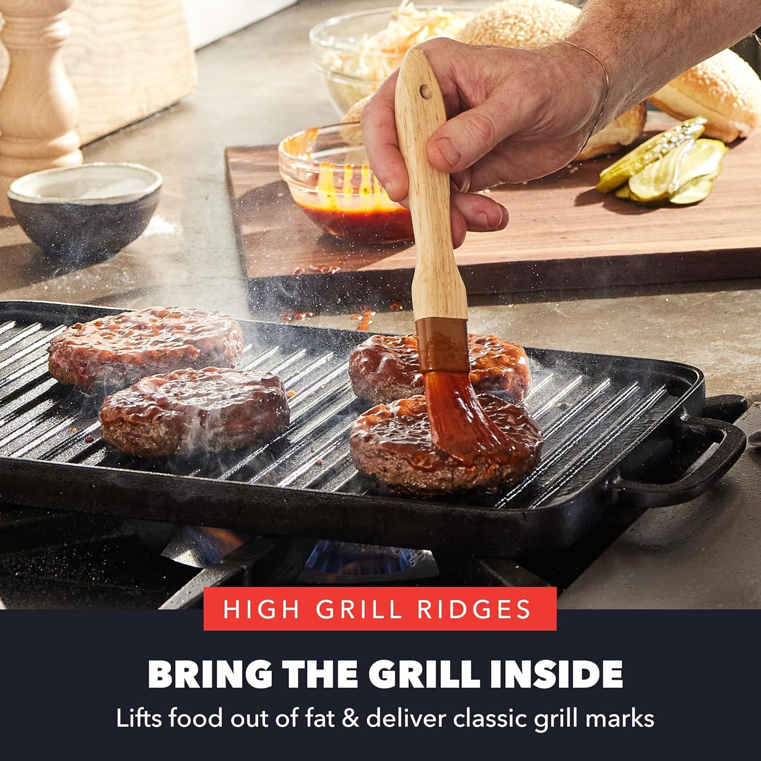 Designed for a lifetime of cooking, world-renowned chef Bobby Flay has partnered with GreenPan to combine his expertise with their innovations in this powerful cast iron collection. Master more meals than ever before with this reversible cast iron grill and griddle. Pre-seasoned to get you started right away, the cast iron body develops a nonstick patina that gets better every time you use it. The large 11” x 16.5” design gives you plenty of room for family-sized cooking while the durable construction holds up for years to come. Suitable for any cooking surface – stovetop, grill, oven, or open flame – this versatile pan features high grill ridges on one side and a smooth griddle on the other to give you an incredible array of options. The generous handles are wide for better balance and more control. This grill and griddle’s thoughtful details are informed by Bobby’s decades of kitchen experience. It’s the perfect way to start cooking like a pro.